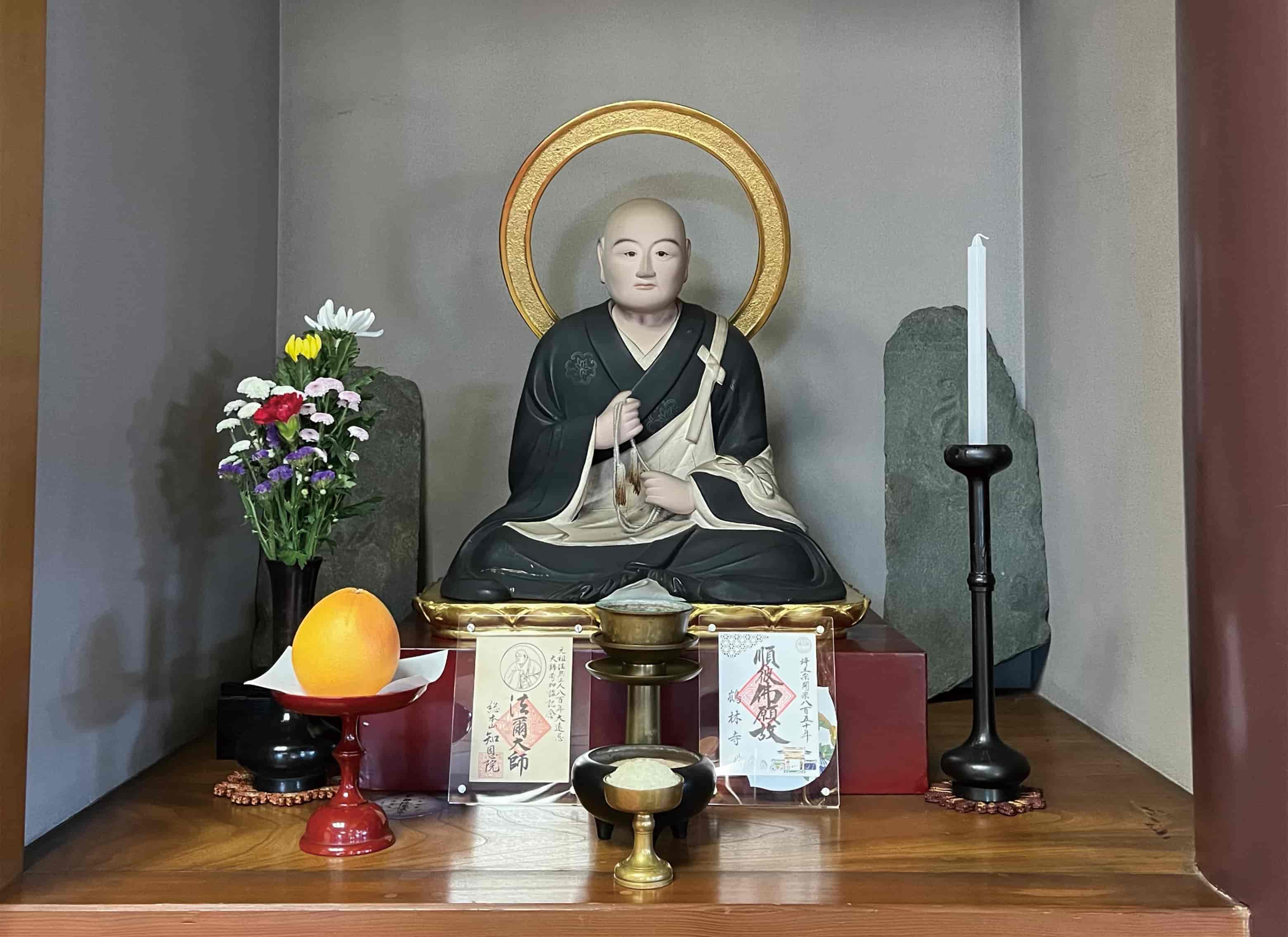 鶴林寺は詳名を「寳亀山寿翁院鶴林寺」といいます。開山は見譽貞山覚智(けんよていざんかくち)和尚。開基は永禄十二年(1569)年に土地や建物を寄進した瀬沼伝右衛門です。当寺はこれまで4回の火災に遭っています。