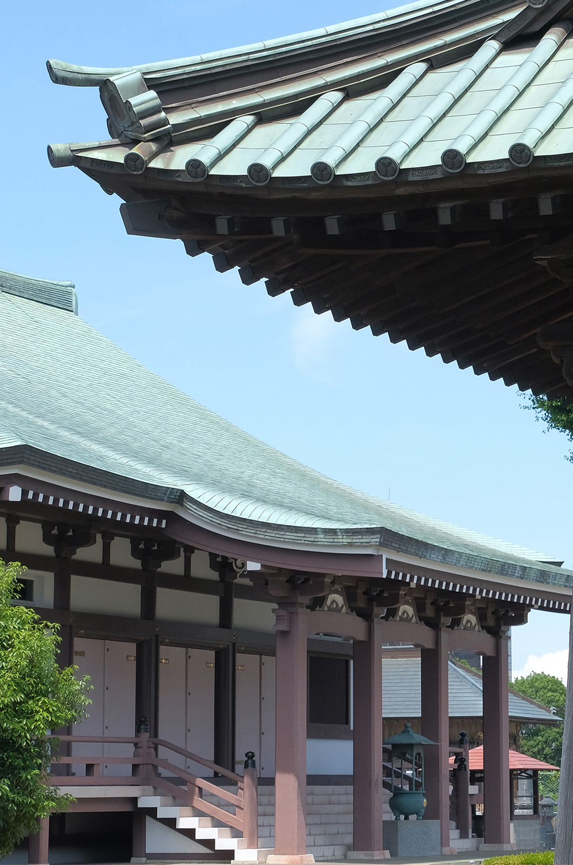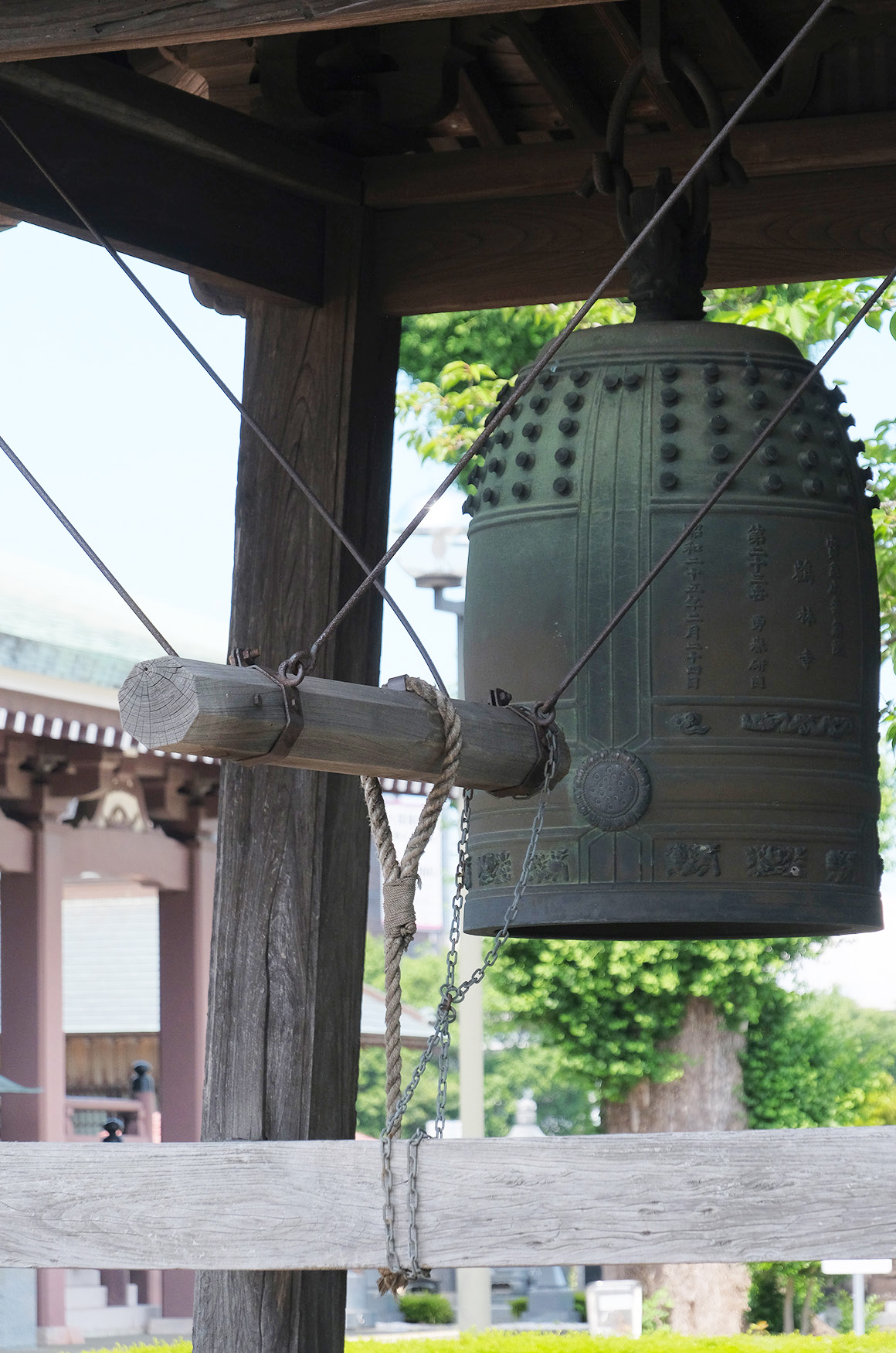 十年後の明治七年に本堂を再建し、現在のコンクリート造りの本堂は二十五世苑譽高雄(えんよこうゆう)和尚の代の昭和四十九(1974)年に再建し、客殿、庫裡は平成十年に再建されました。鐘撞堂は享保二(1717)年に造立され、同年鋳造の梵鐘(釣鐘)は昭和十三年に他の仏具とともに供出されましたが、昭和二十五年檀信徒をはじめ下鶴間全域にわたる有志の浄財により新しい梵鐘が奉納されました。